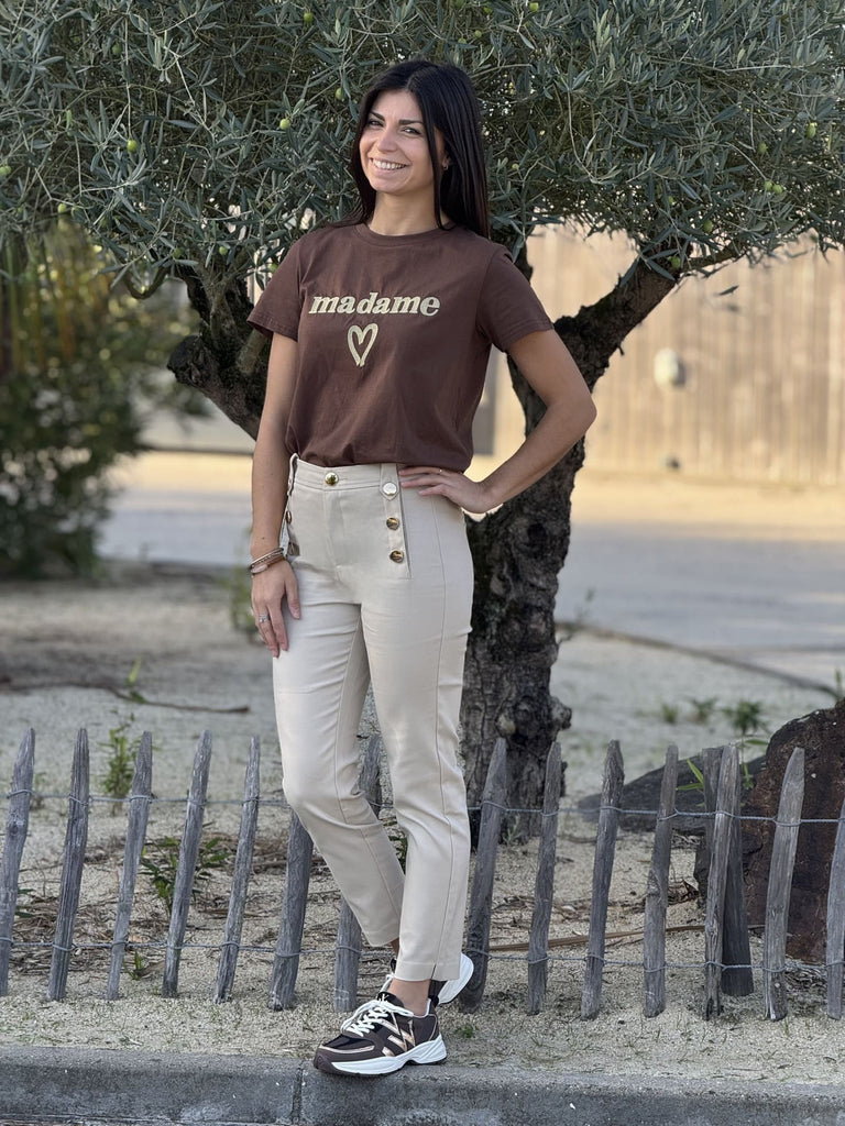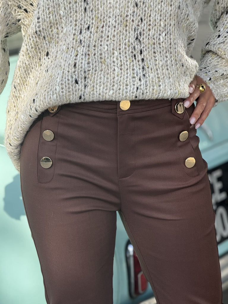 - PANTALON CAROTTE AVEC BOUTONS SUR COTE