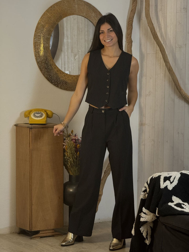 - Veste sans manche col v boutons devant derriere à resserer