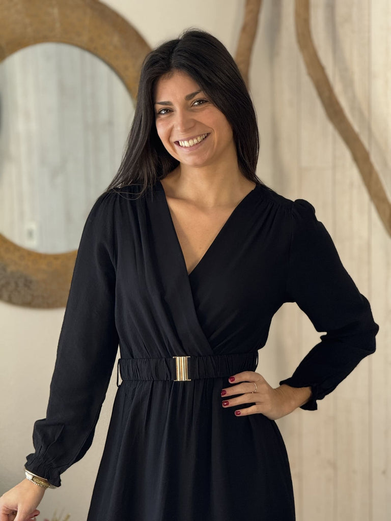 • ROBE LONGUE À ML COL CACHE CŒUR AVEC CEINTURE À LA TAILLE