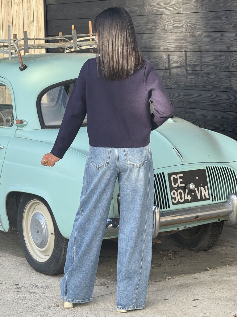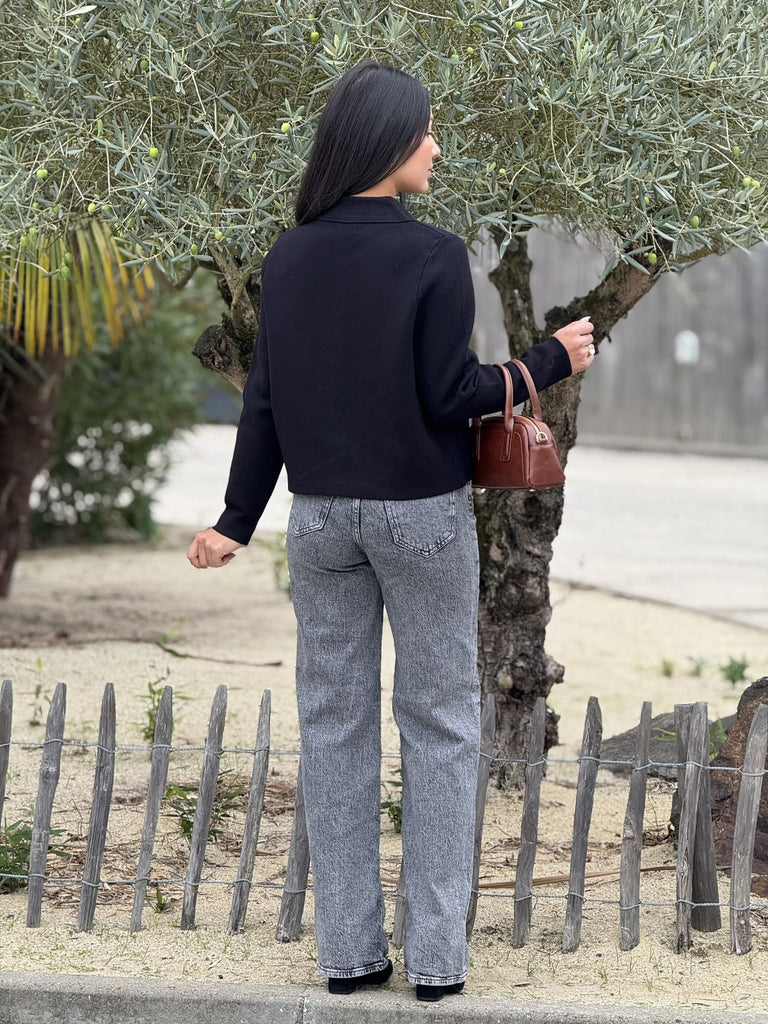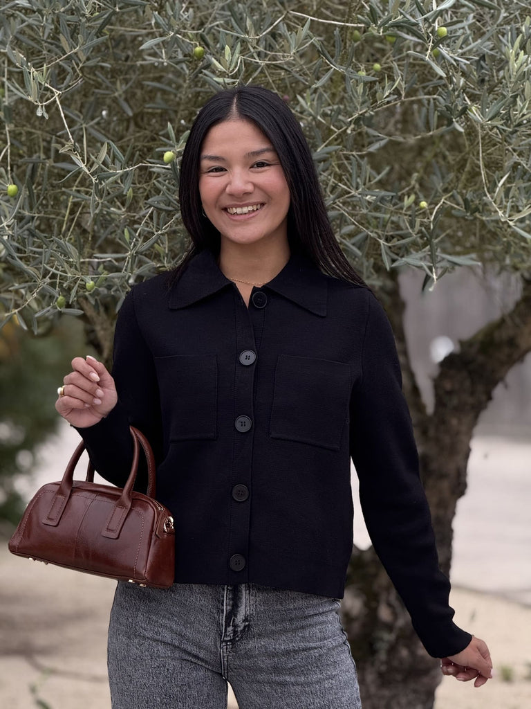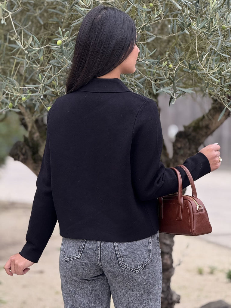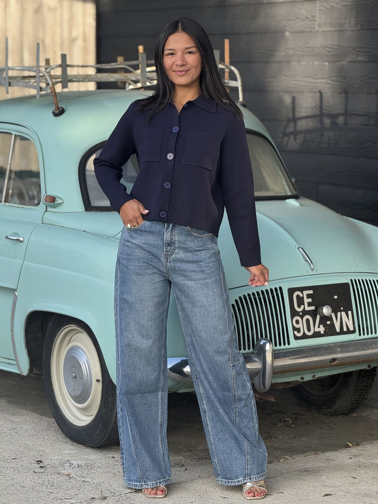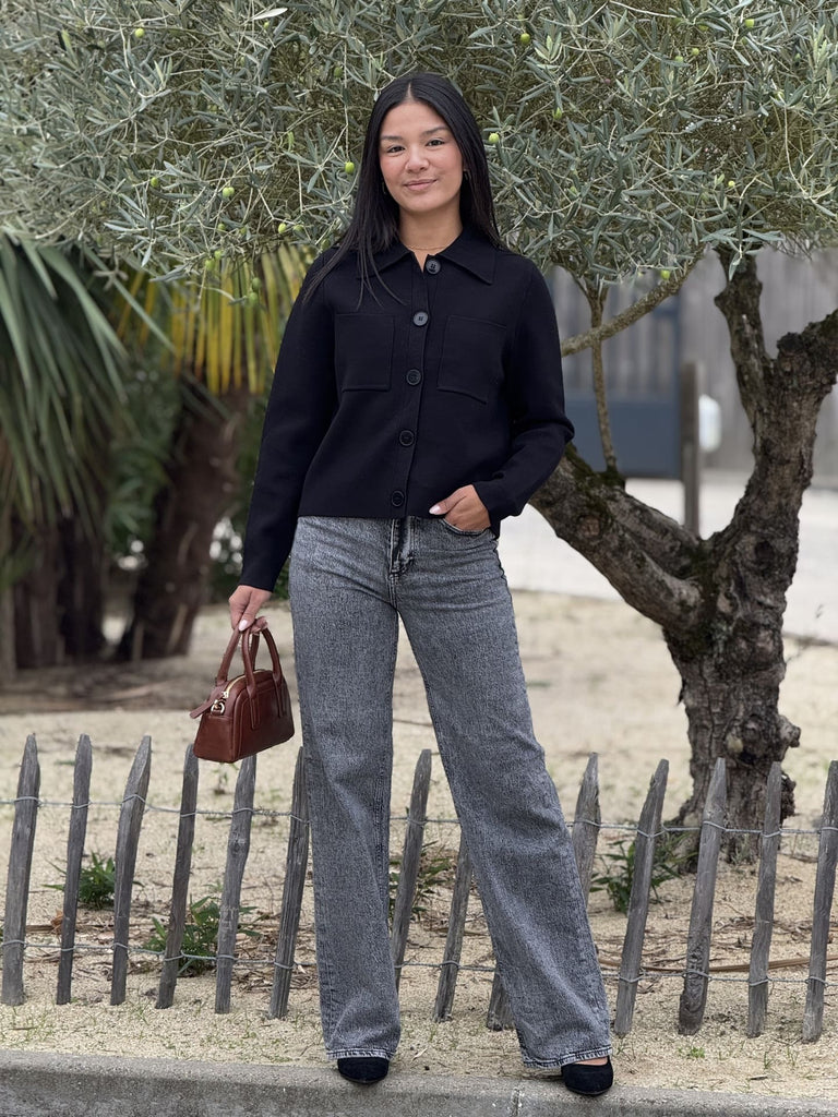 - VESTE COURTE à ml 2 poches sur poitrine avec boutons