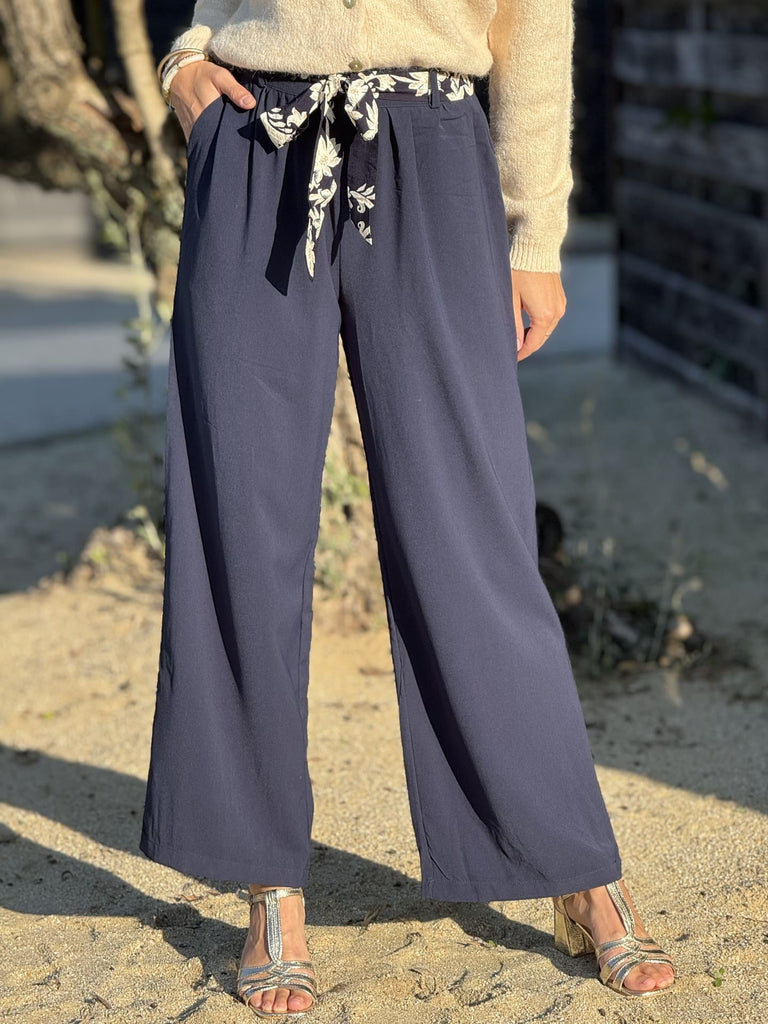- WIDE AND FLUID PANTS WITH MULTICOLOR PRINTED BELT