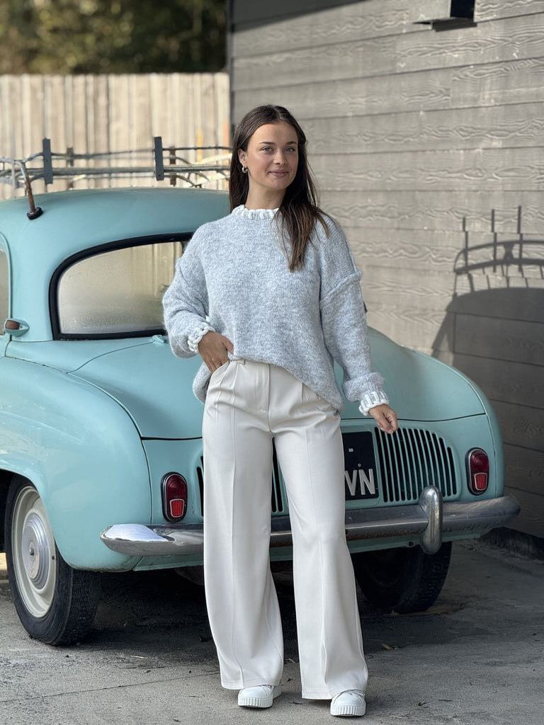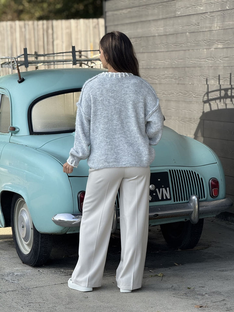 - Pull à ml col rond haut avec couture blanche apparentes