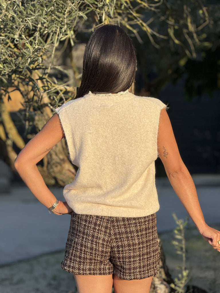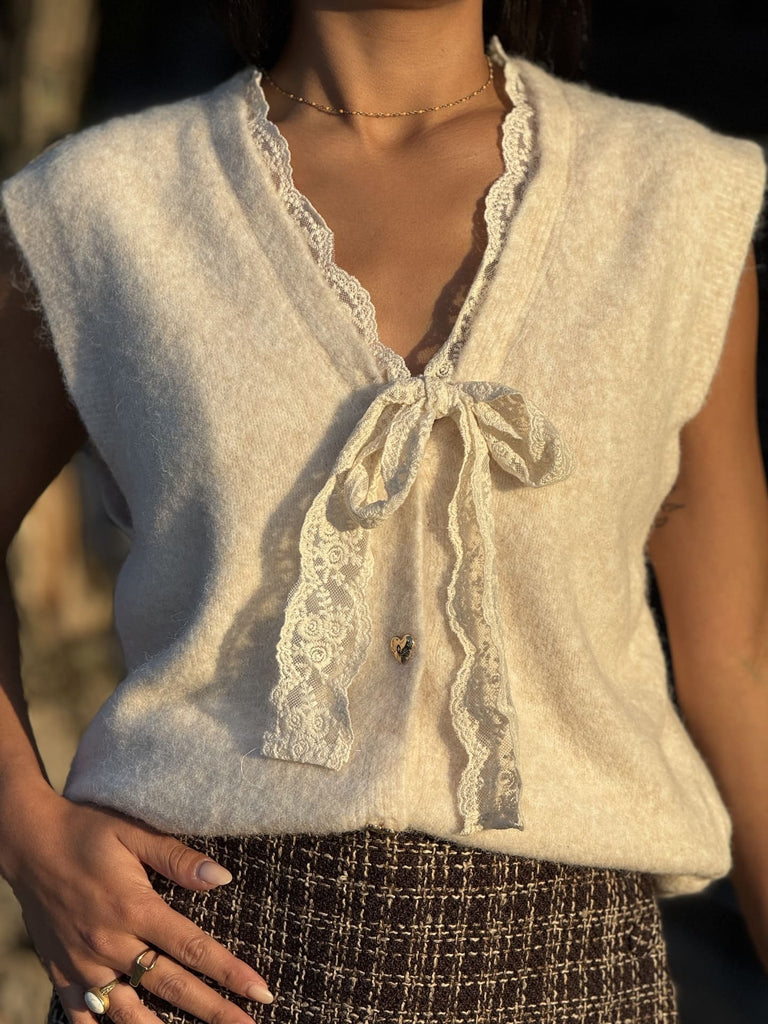 - Pull sans manche avec gros nœud devant
