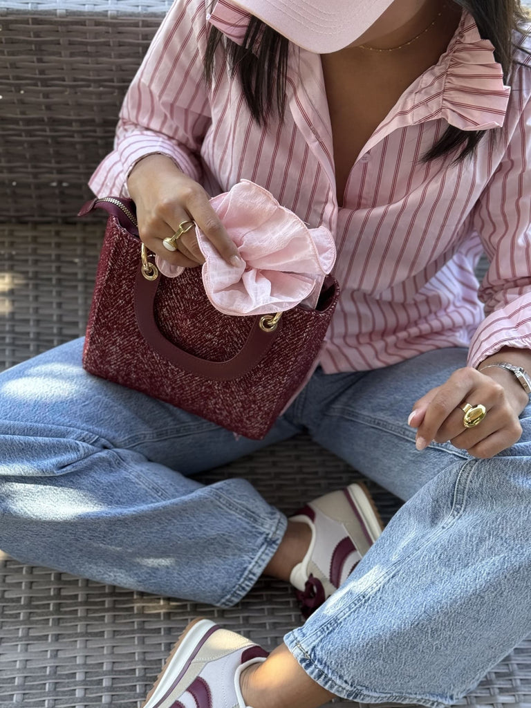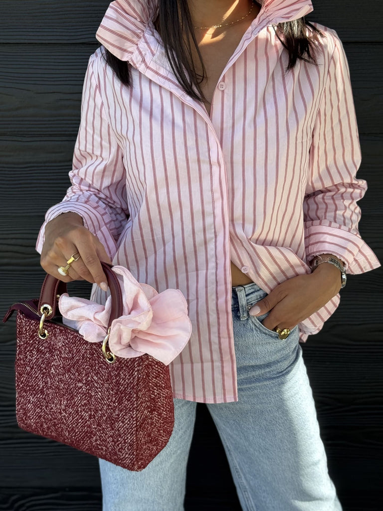 • Chemisier à ml col haut froufrou - imprimé à rayures