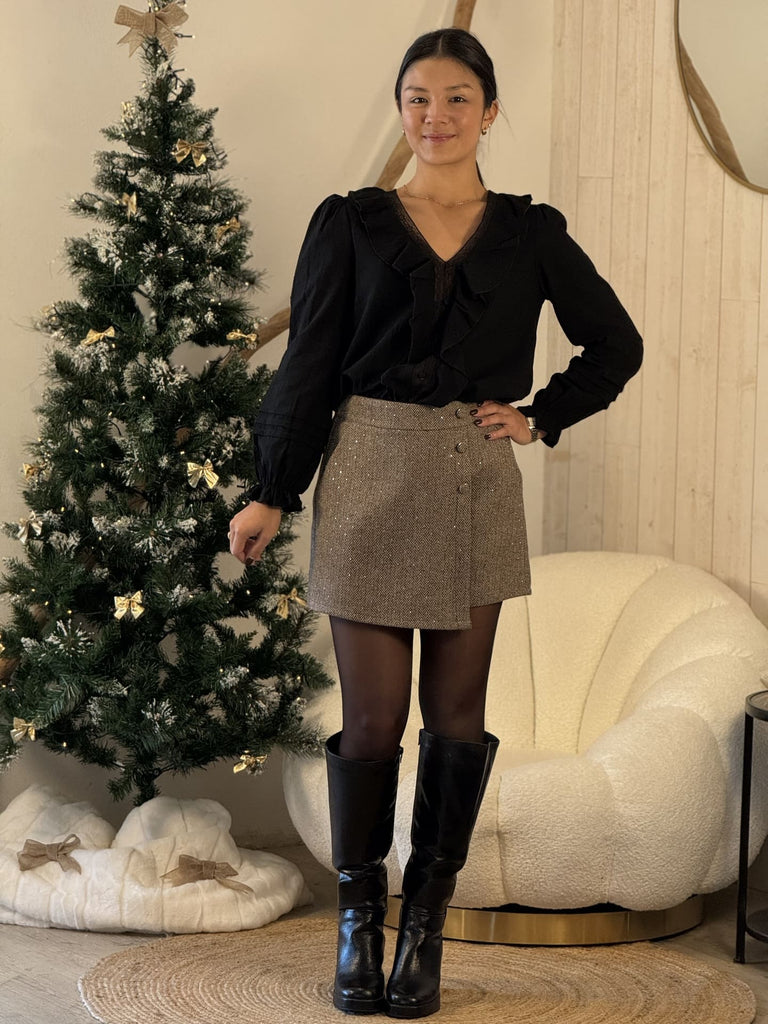 Mathilde mesure 1m65. Elle porte la taille S pour ce modèle.