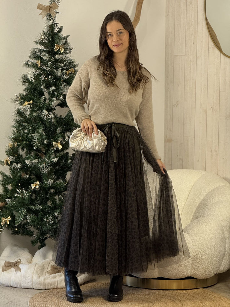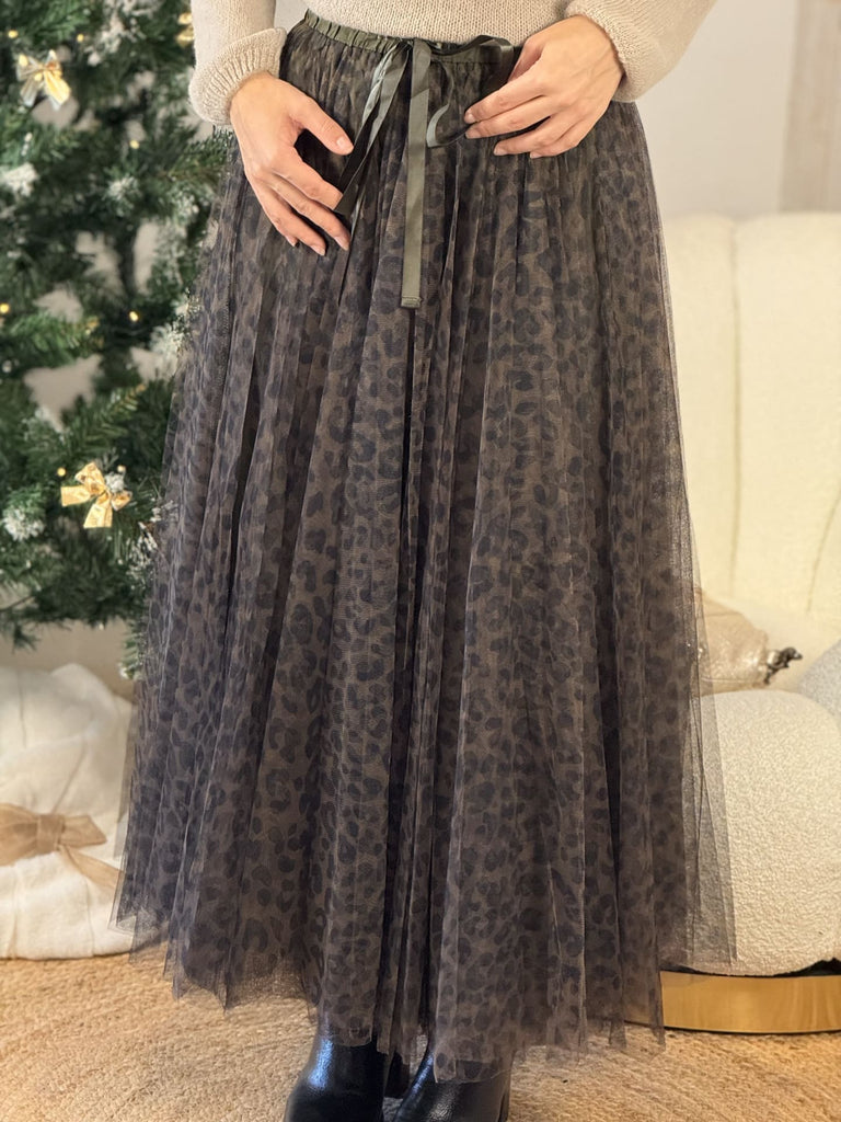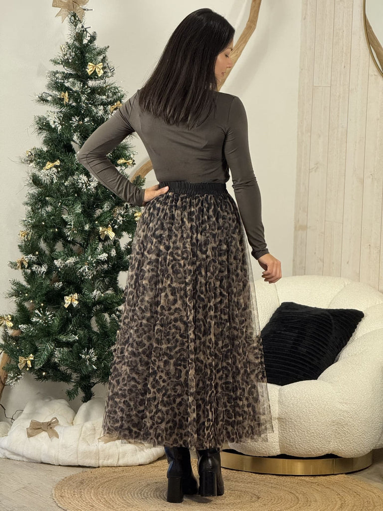 • JUPE PLISSEE TULLE MOTIF LEOPARD