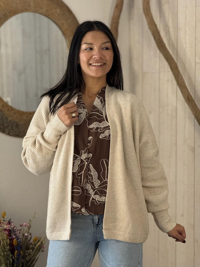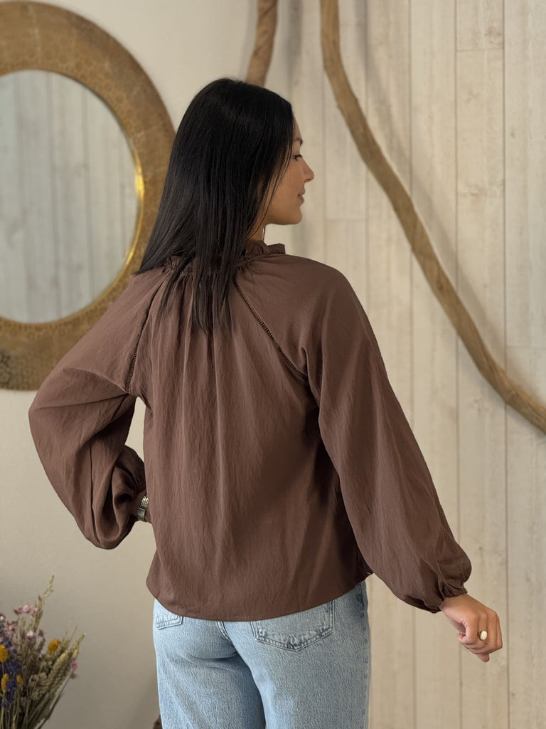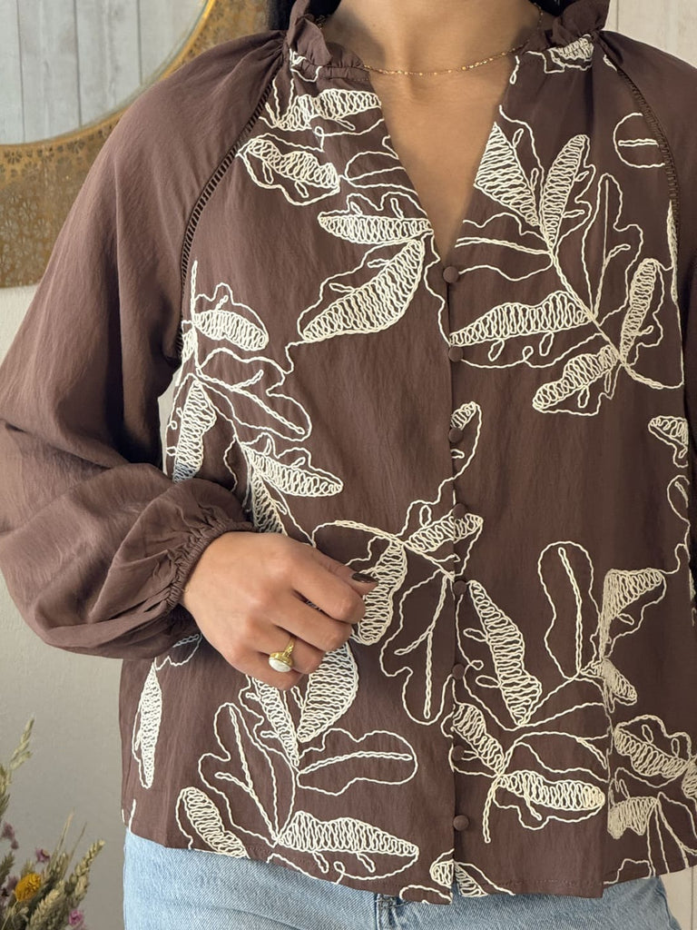 • Chemisier à ml uni sur manches - imprimé grosses feuilles