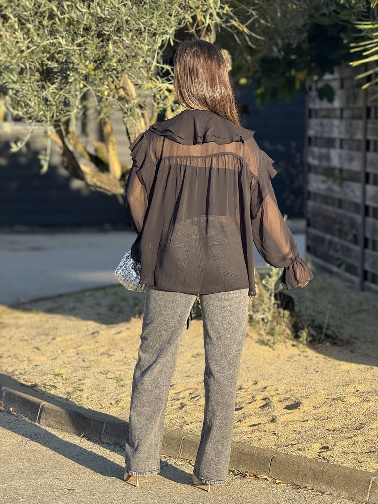 - Chemisier à ml col v lien avec froufrou - manches resserré en bas