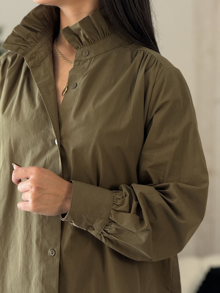 • Chemisier à ml col haut froufrou