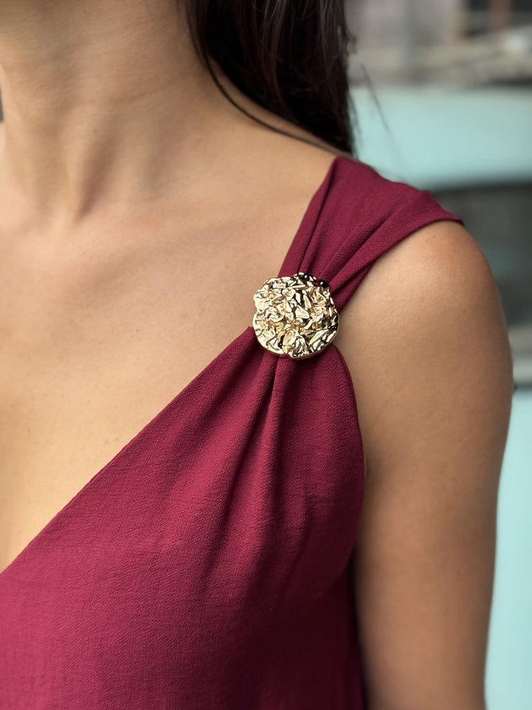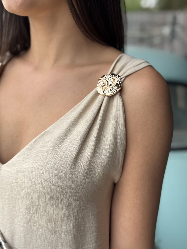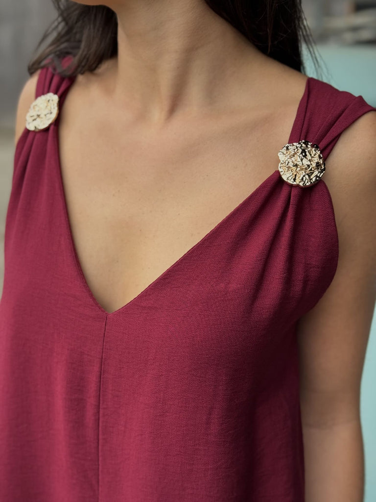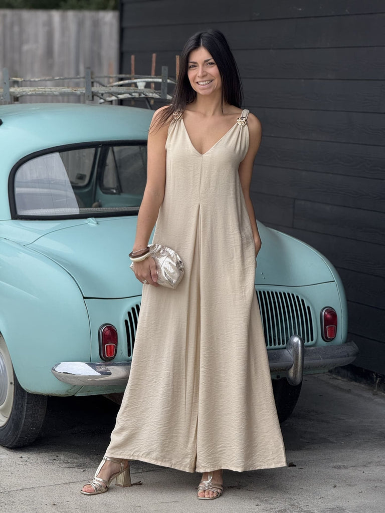 - Combi pantalon / jupe culotte sans manche bretelles avec boutons gold col v