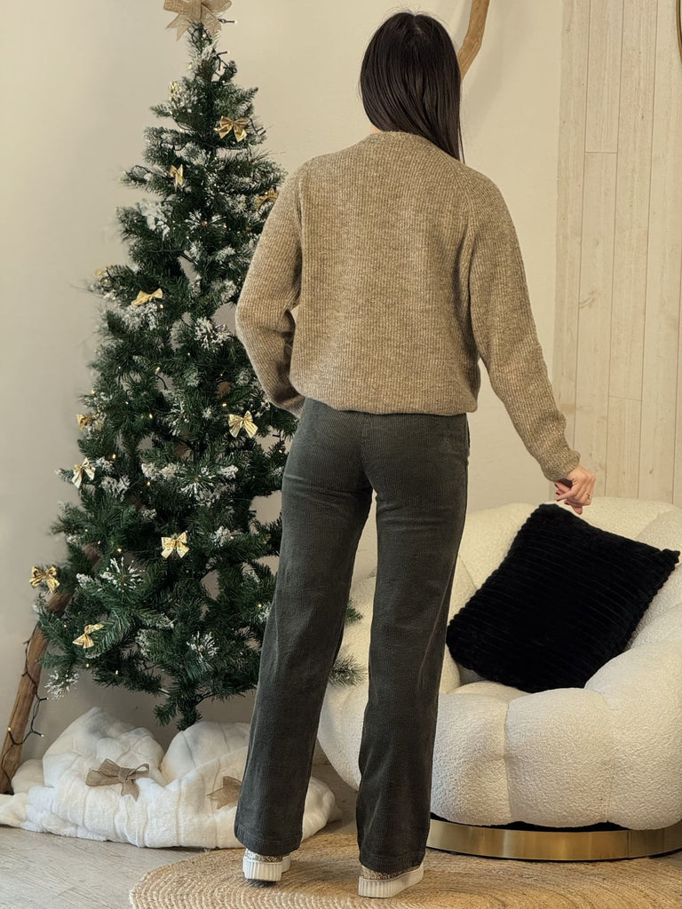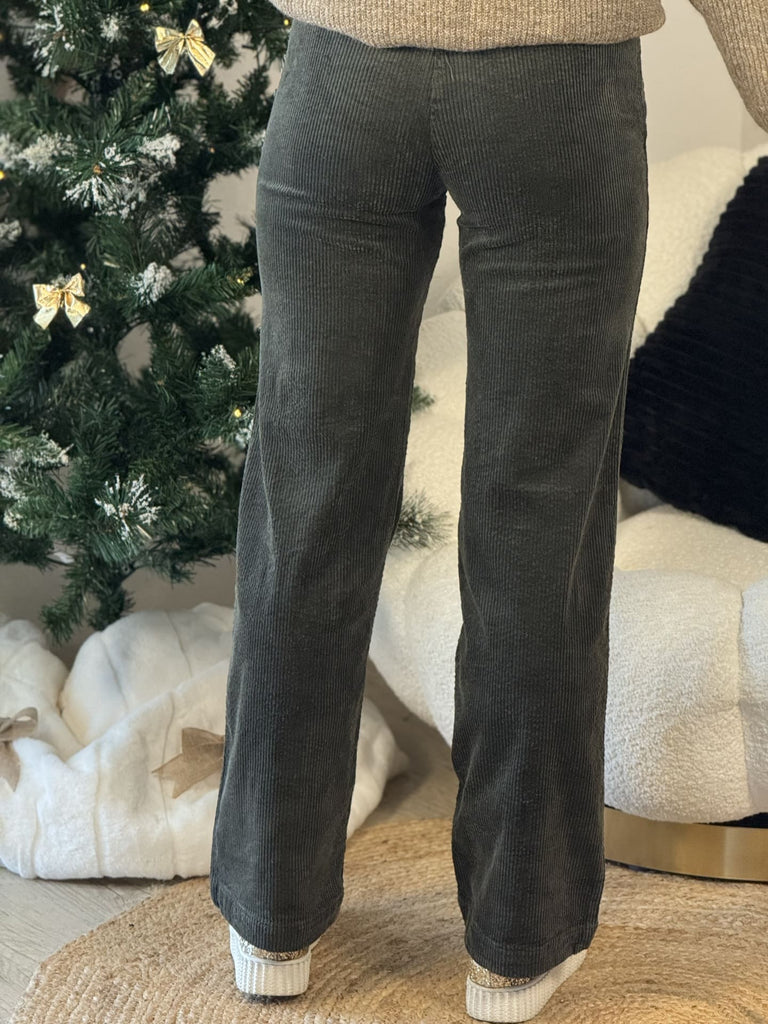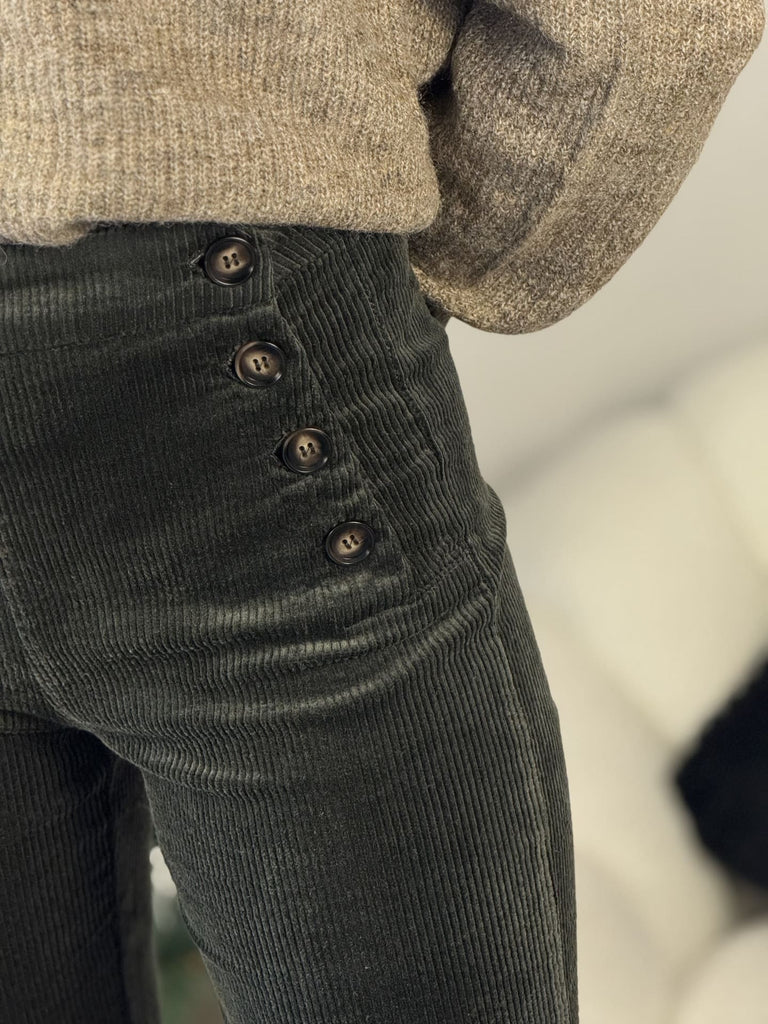 • Pantalon droit en velours avec 4 boutons de chaque côté