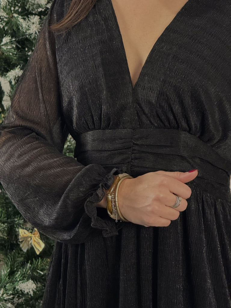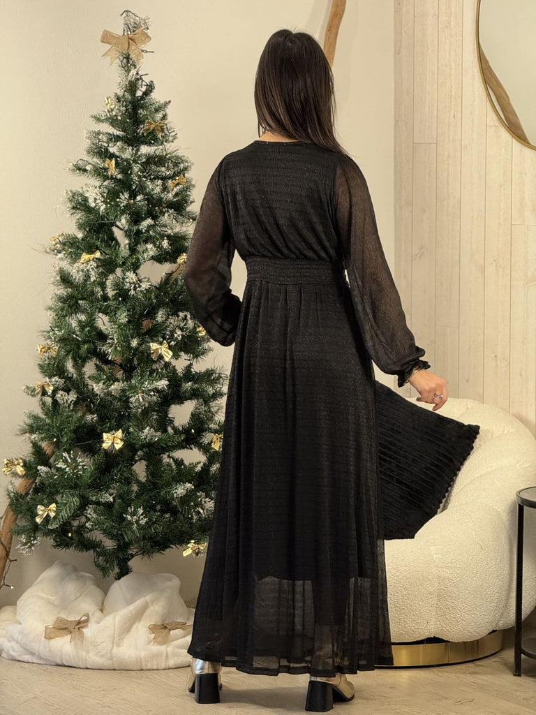 •  Robe longue à ml col v plongeant - imprimer petites paillettes