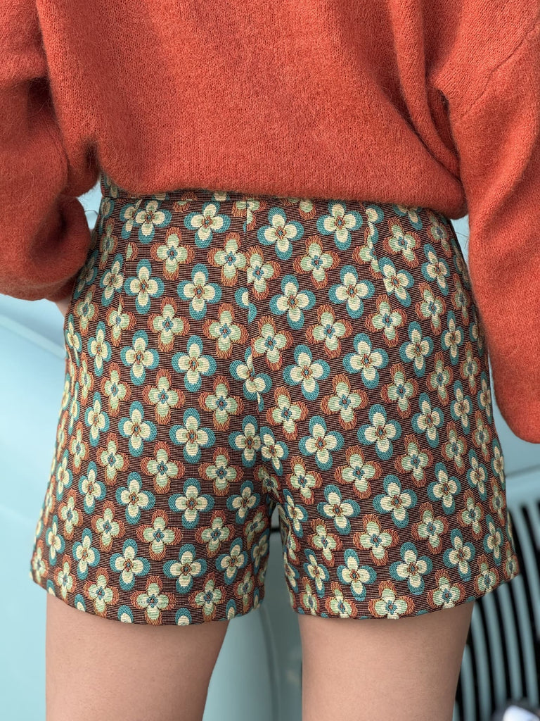 - SHORT court 1 bouton 2 poches imprimé fleuris seventies