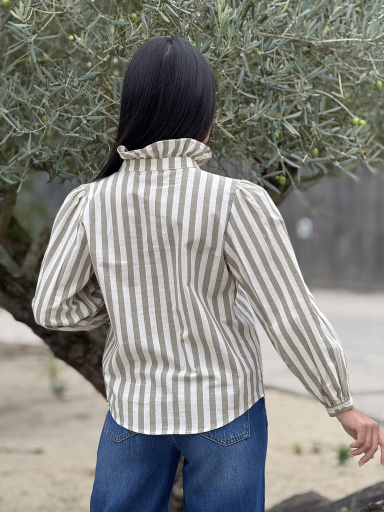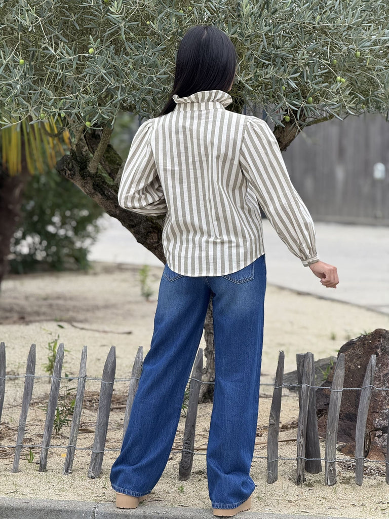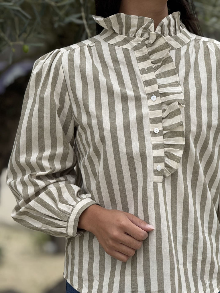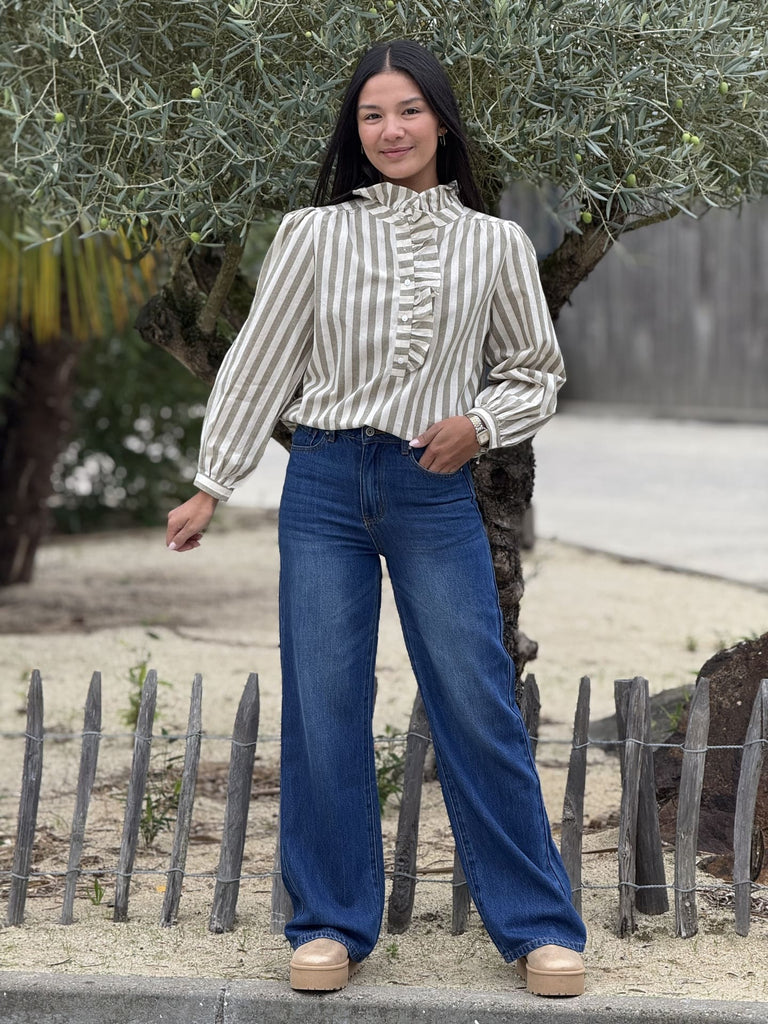 - Chemise à ml froufrou devant - imprimé rayures