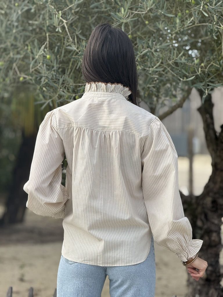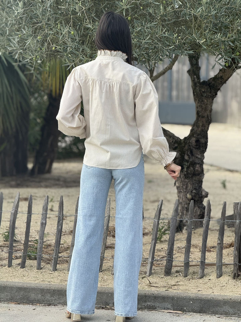 - Chemisier à ml imprimé rayure s- col haut froufrou