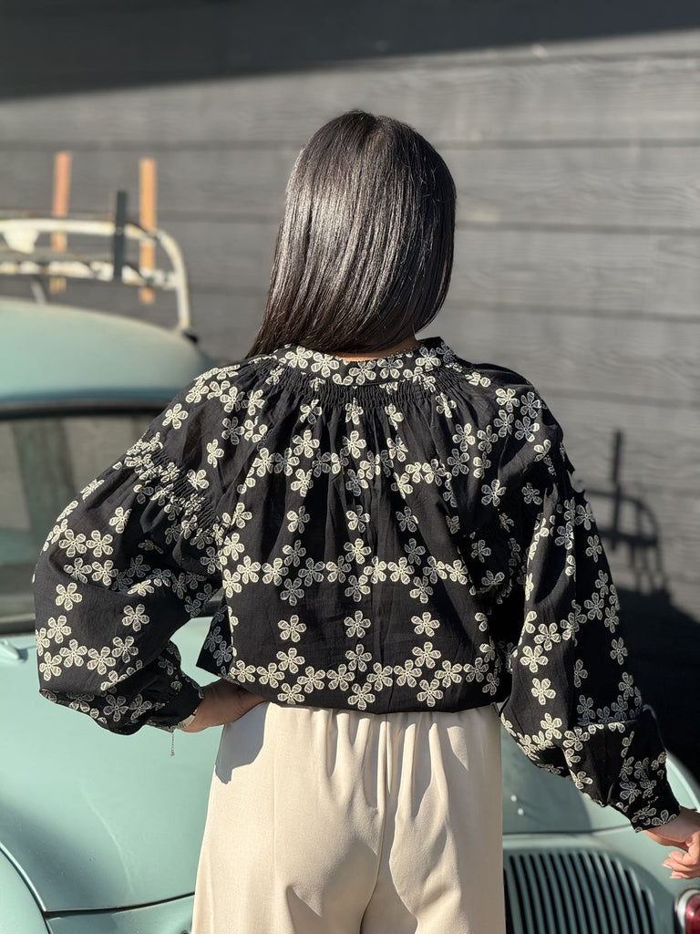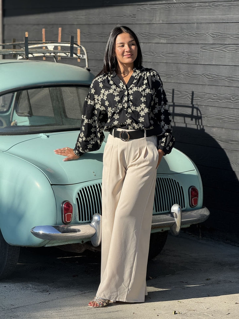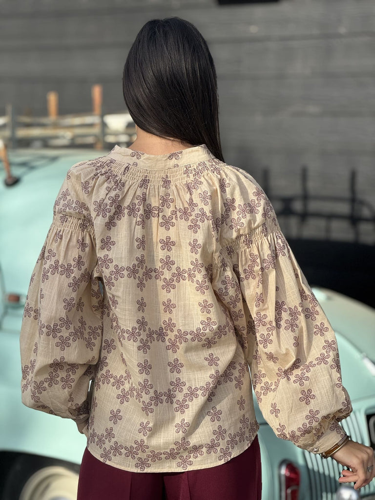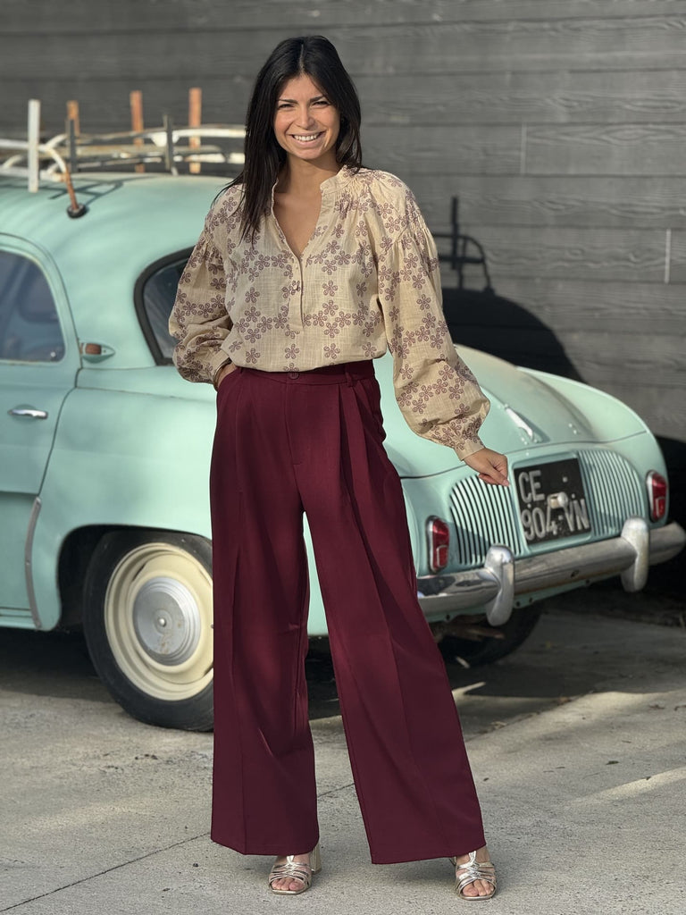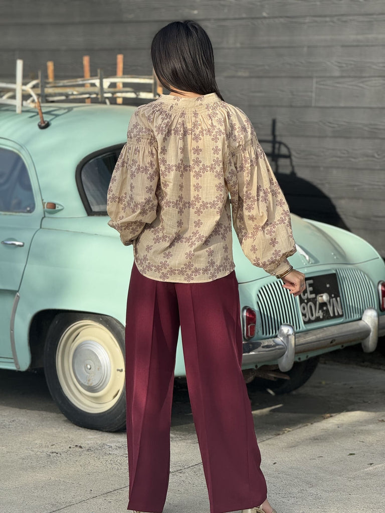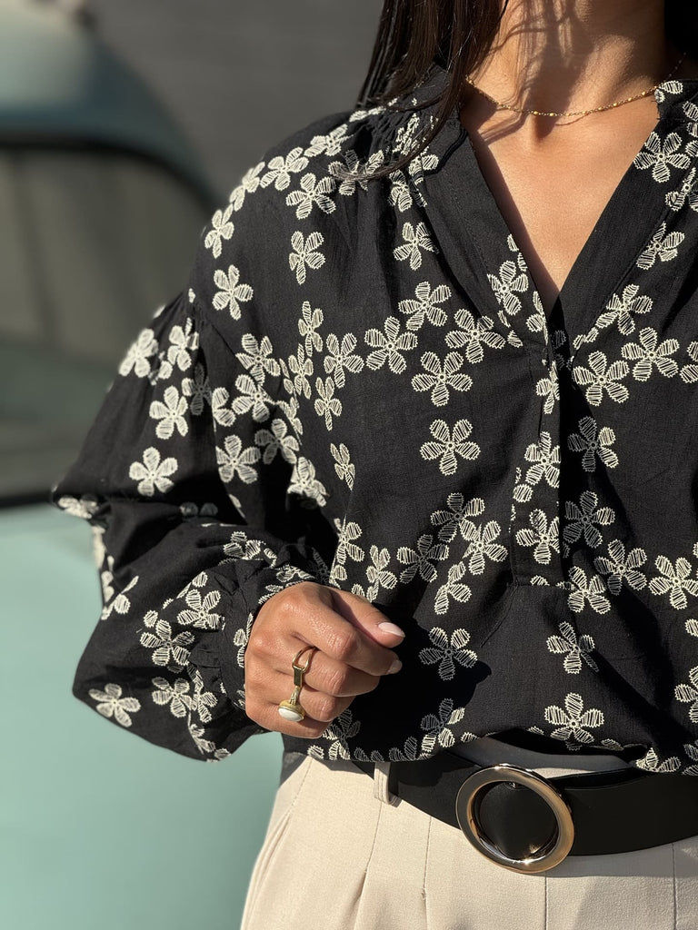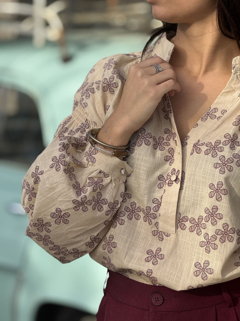 - Chemisier à ml col v boutons - imprimé petites fleurs partout