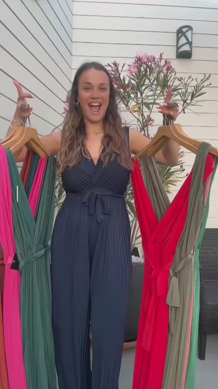 - COMBI PANTALON - JAMBE LARGE - CEINTURE TAILLE - COL V - BRETELLE MARCELLE