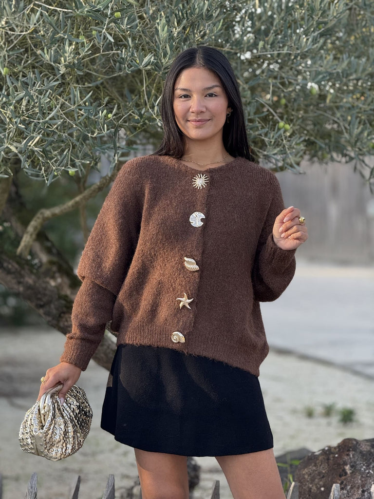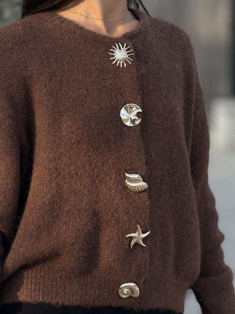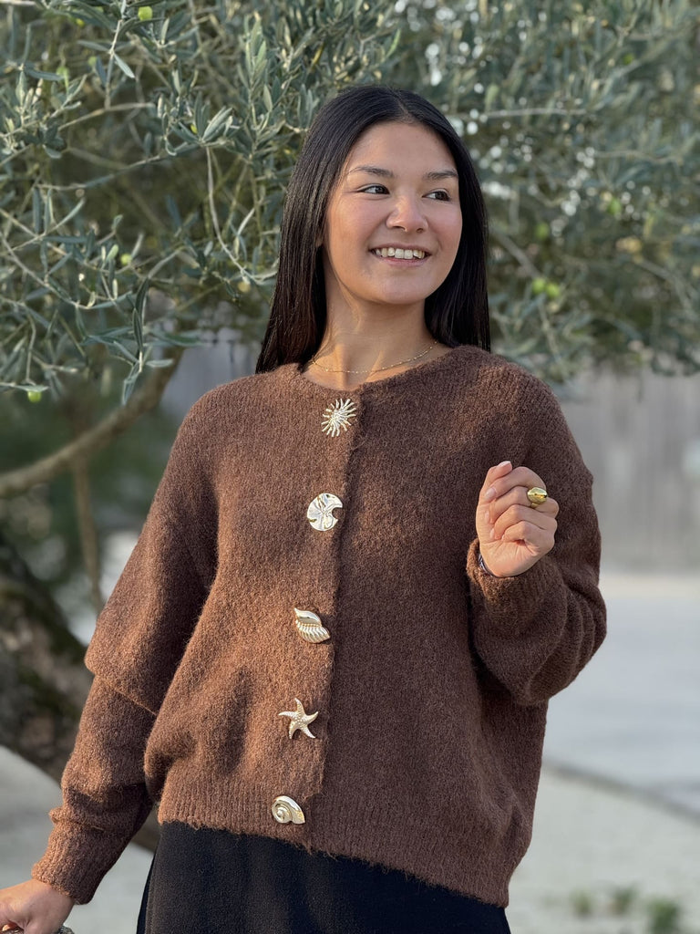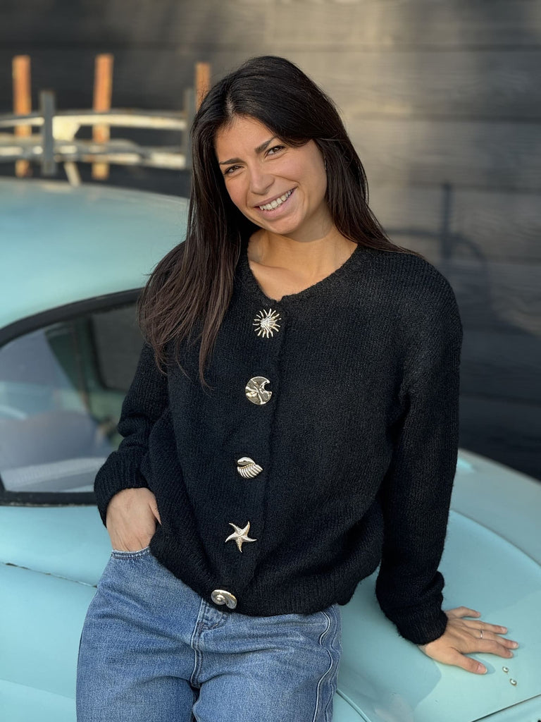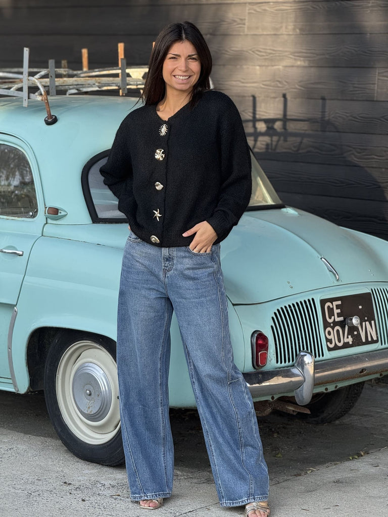 - Gilet à ml col rond boutons doré formes soleil étoile etc