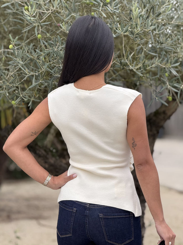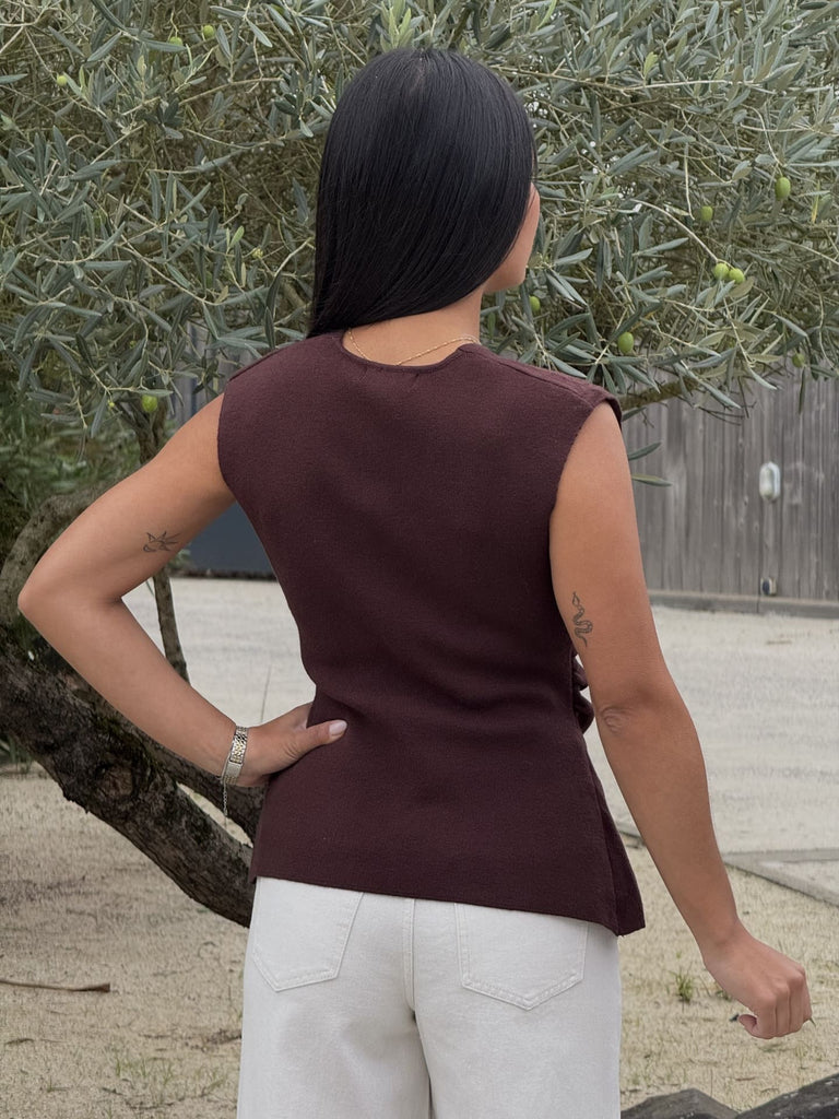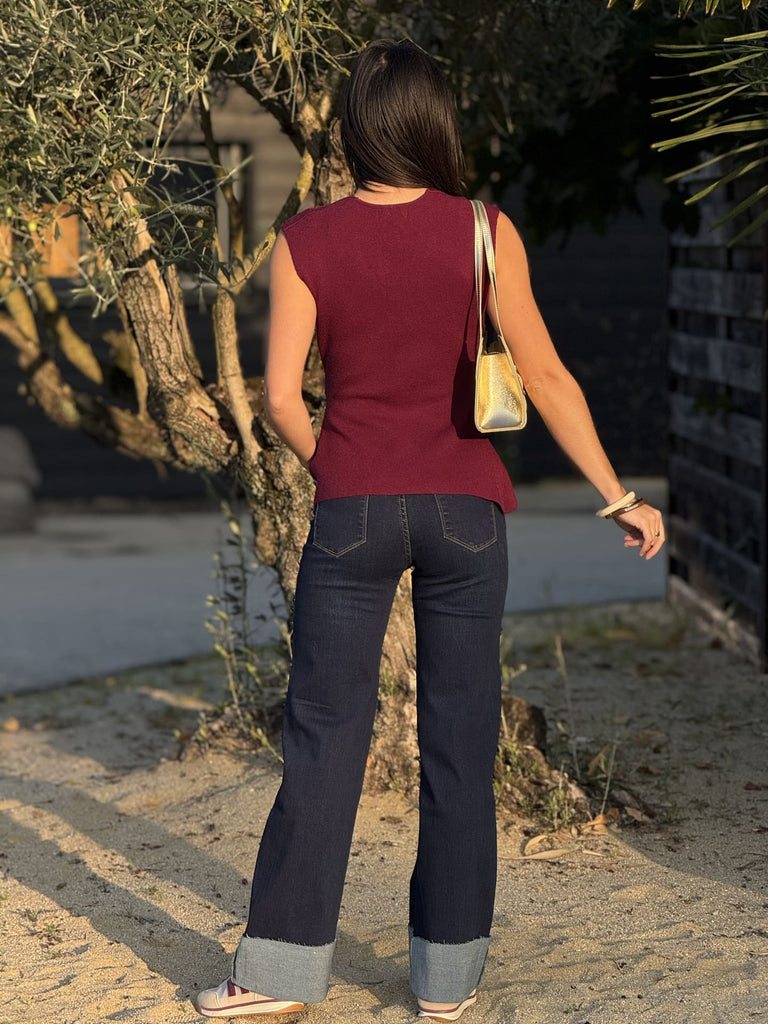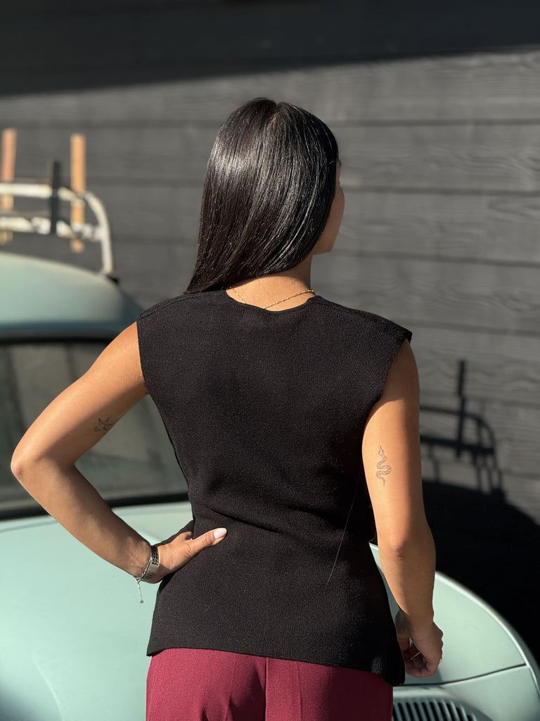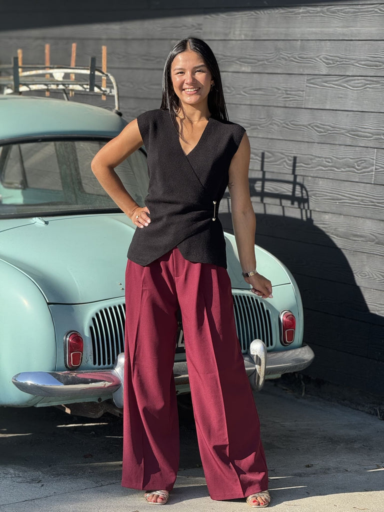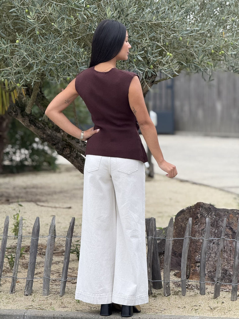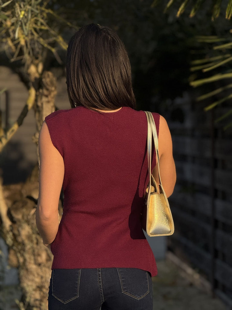 • GILET SANS MANCHE COL CACHE CŒUR - FRONCE SUR COTE AVEC BROCHE DORE