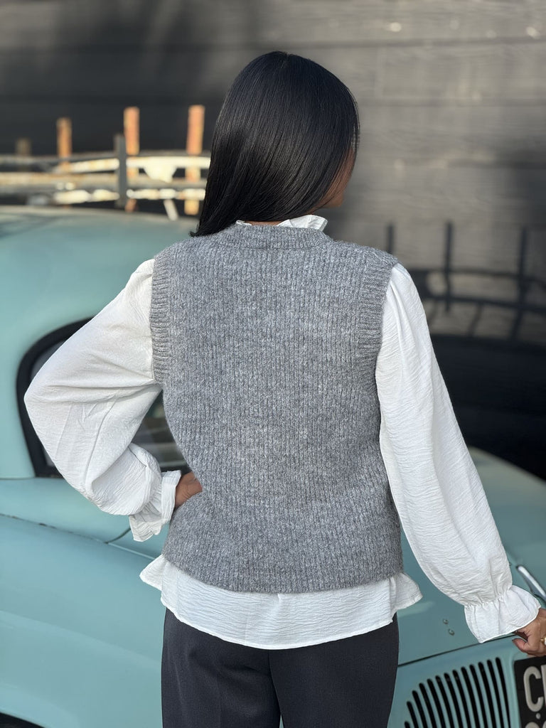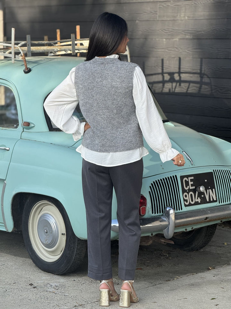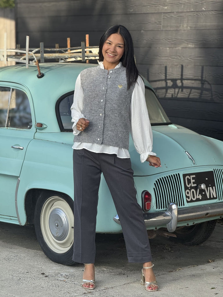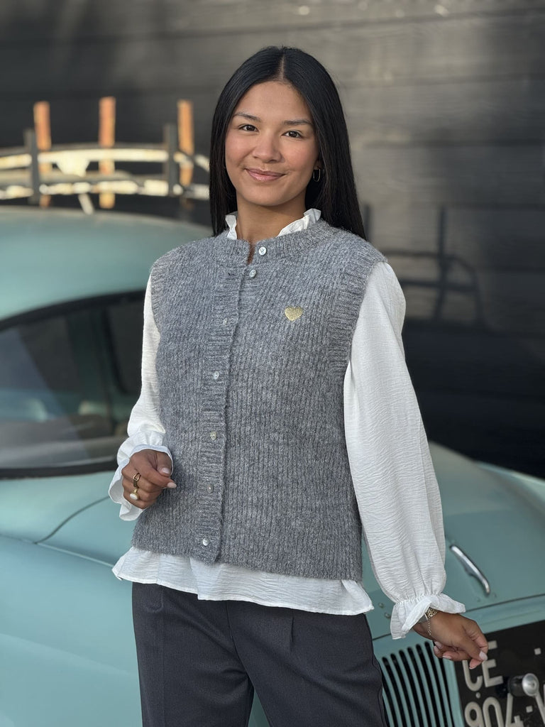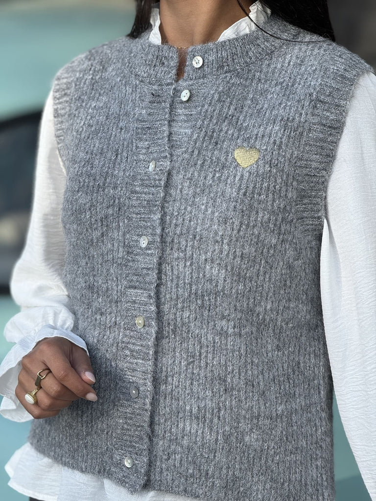 - GILET SANS MANCHE AVEC BRODERIE EN FORME DE CŒUR AVEC BOUTONS DEVANT