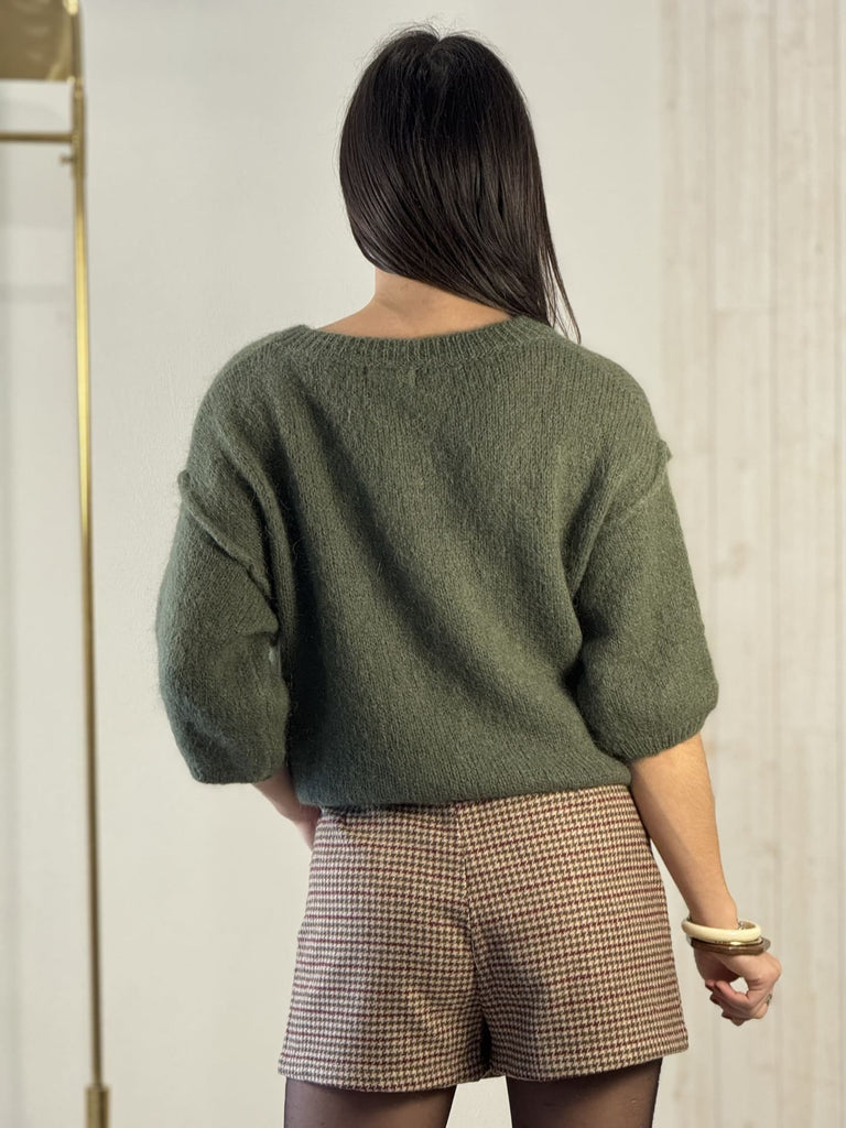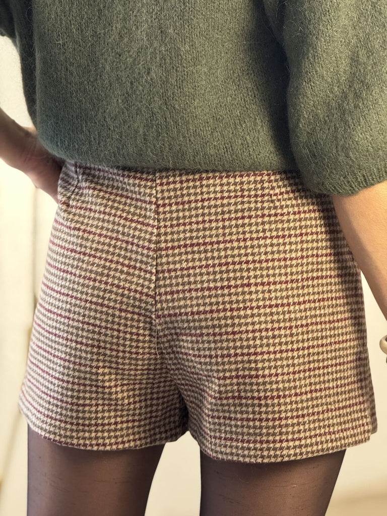 • JUPE SHORT - imprimé à carreaux - 2 boutons doré devant