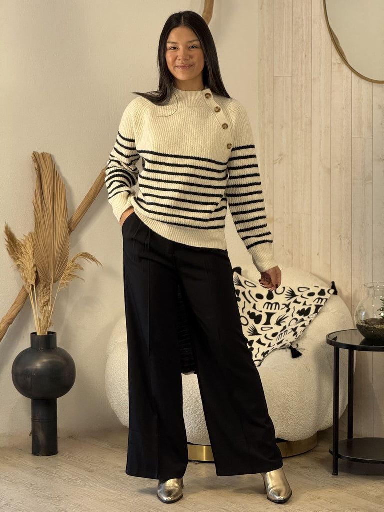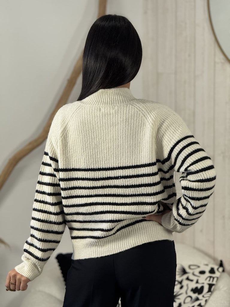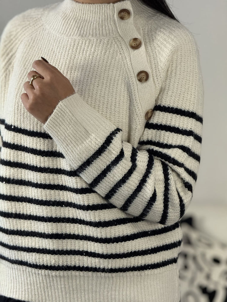 • Pull à ml col haut rond avec boutons sur côté imprimé marinière