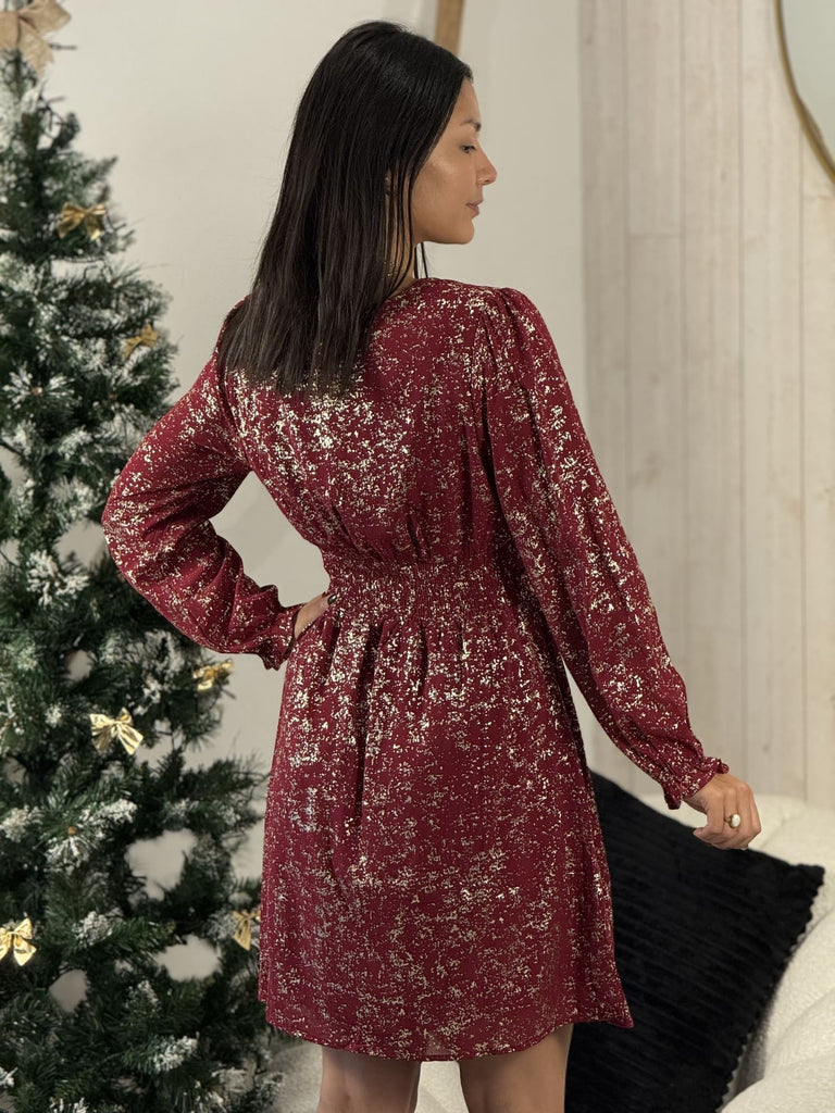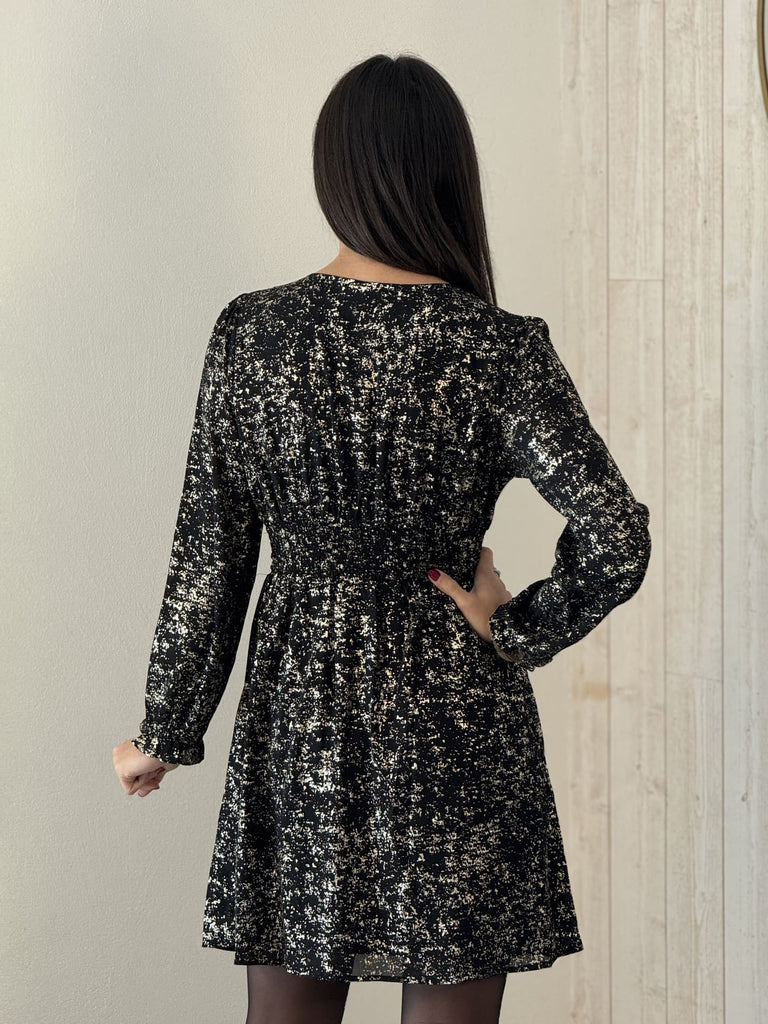 - Robe courte à ml col cache cœur - imprimé tâcheté doré