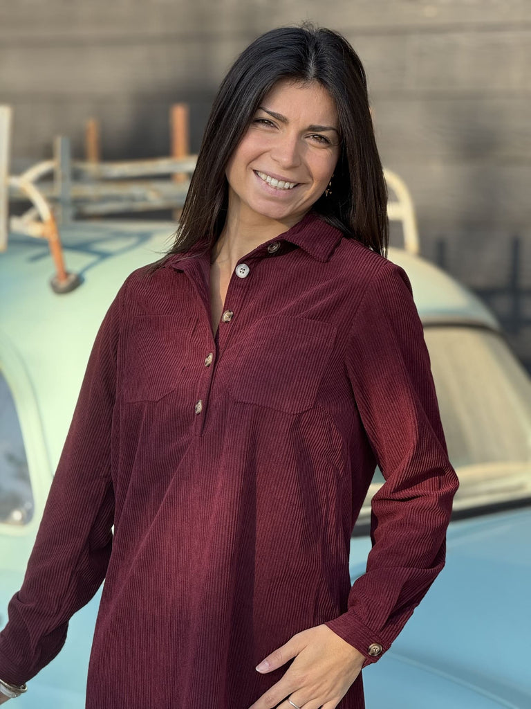 Justine mesure 1m69. Elle porte la taille S/M pour ce modèle.