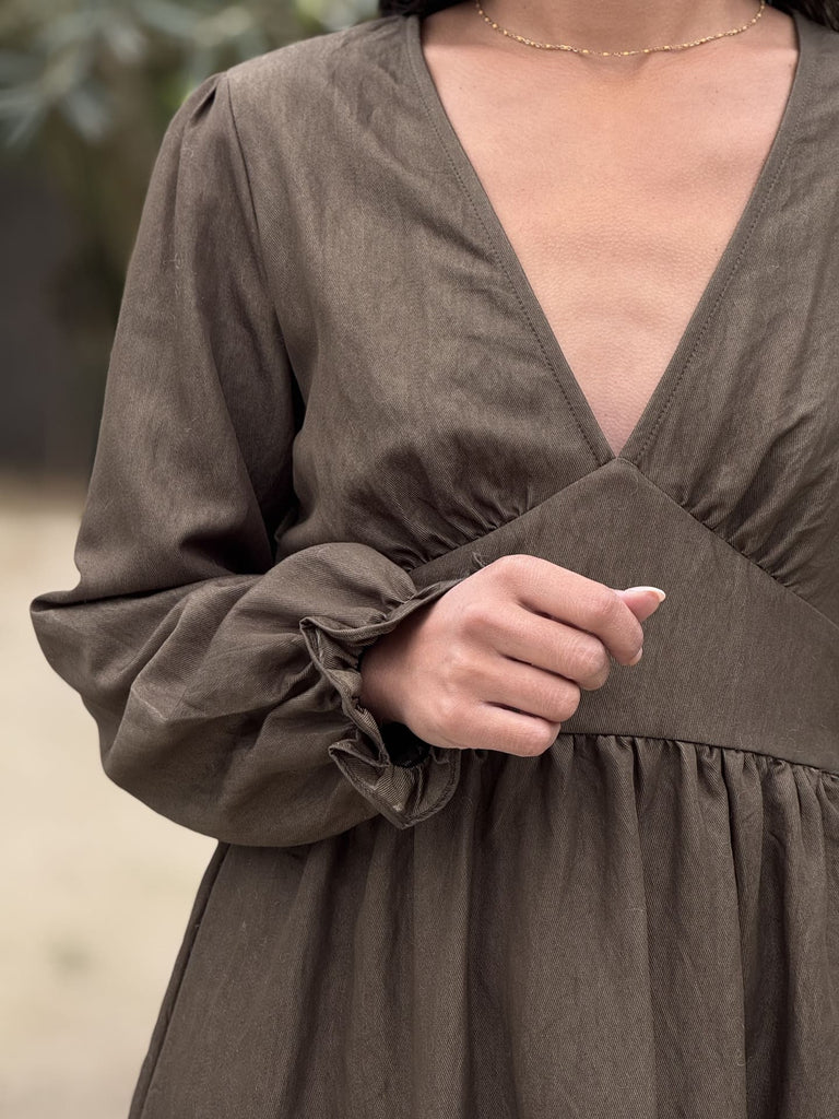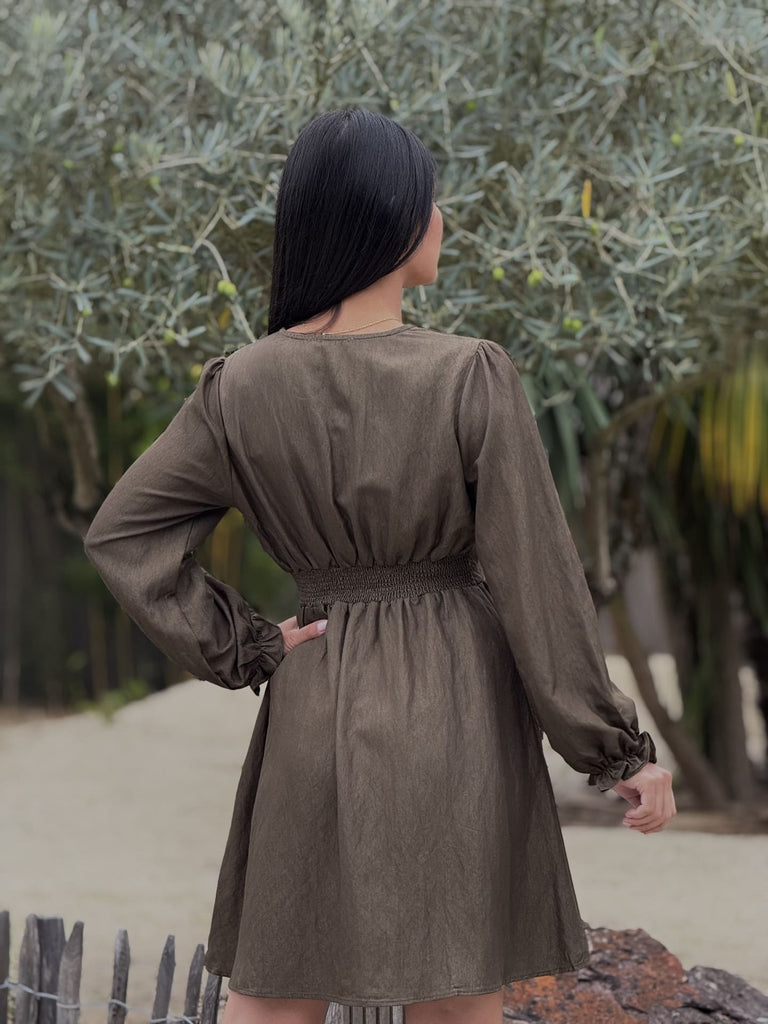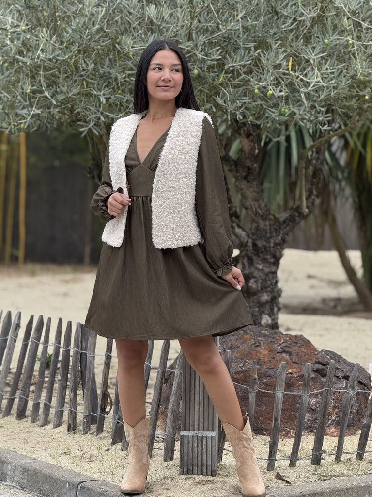 • ROBE COURTE à ml col v plongeant - resserré à la taille