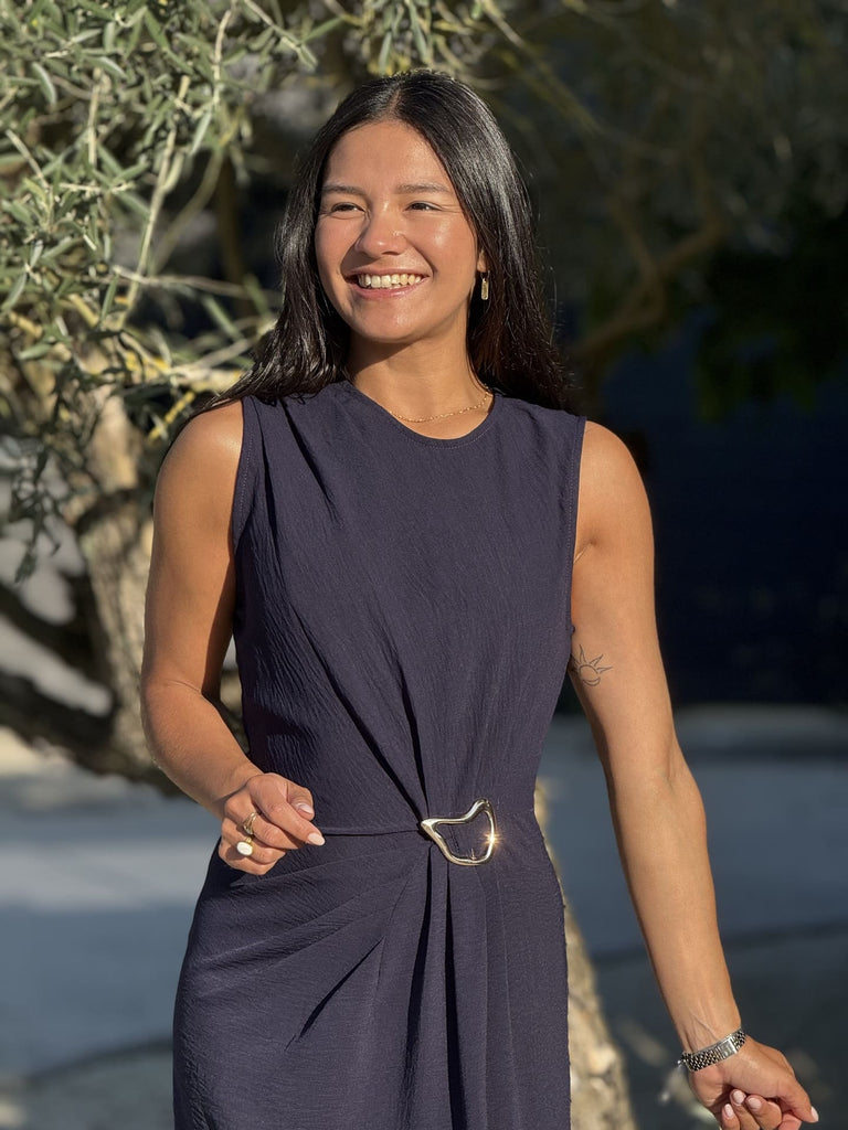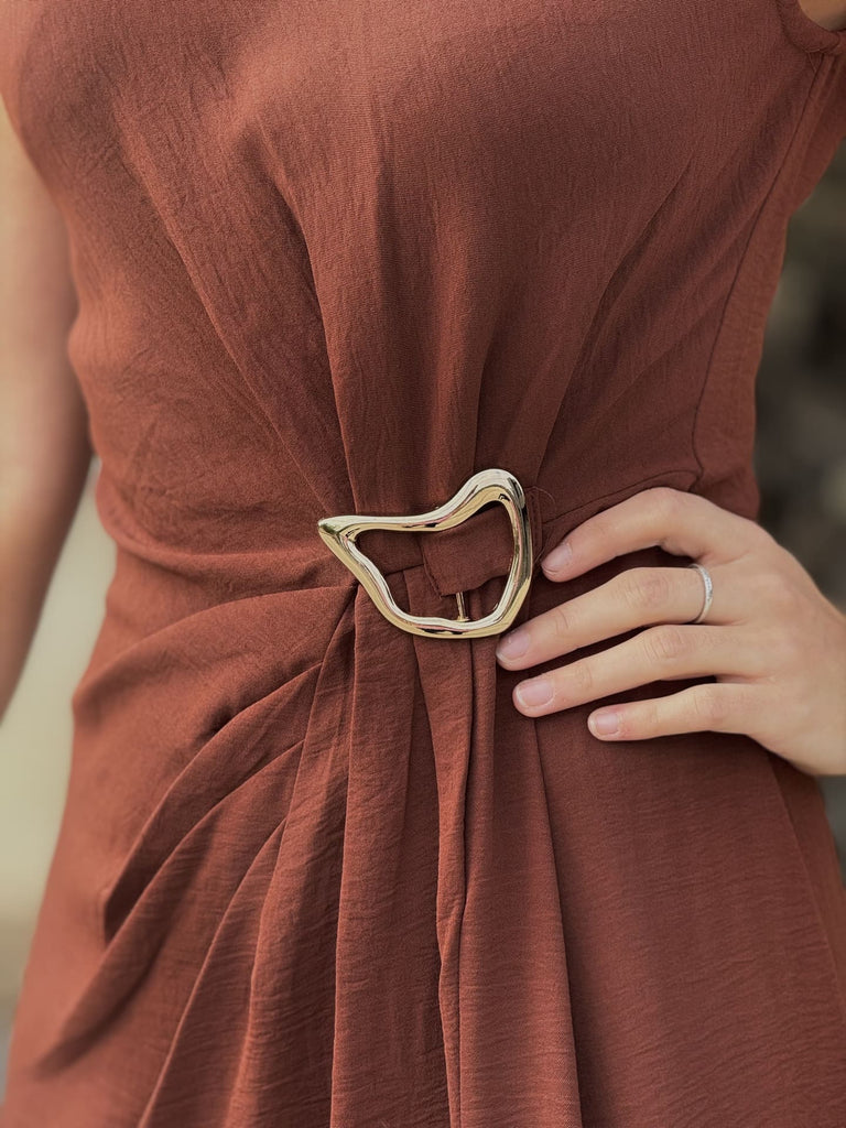 • Robe longue sans manche - col rond - broche doré