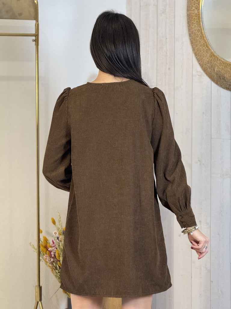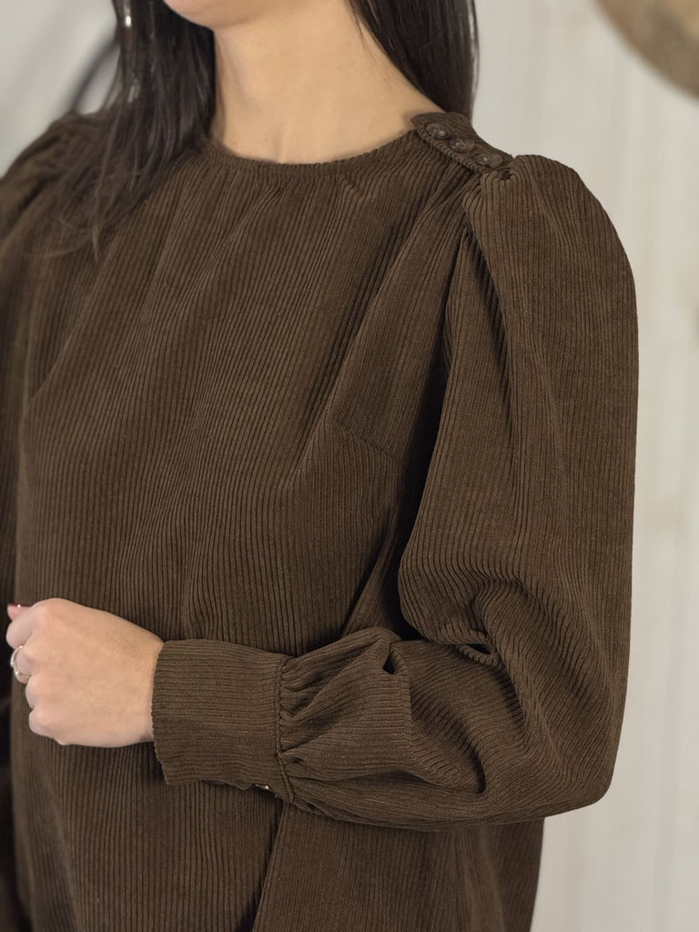 • ROBE COURTE en velours droite à ml bouffantes en haut