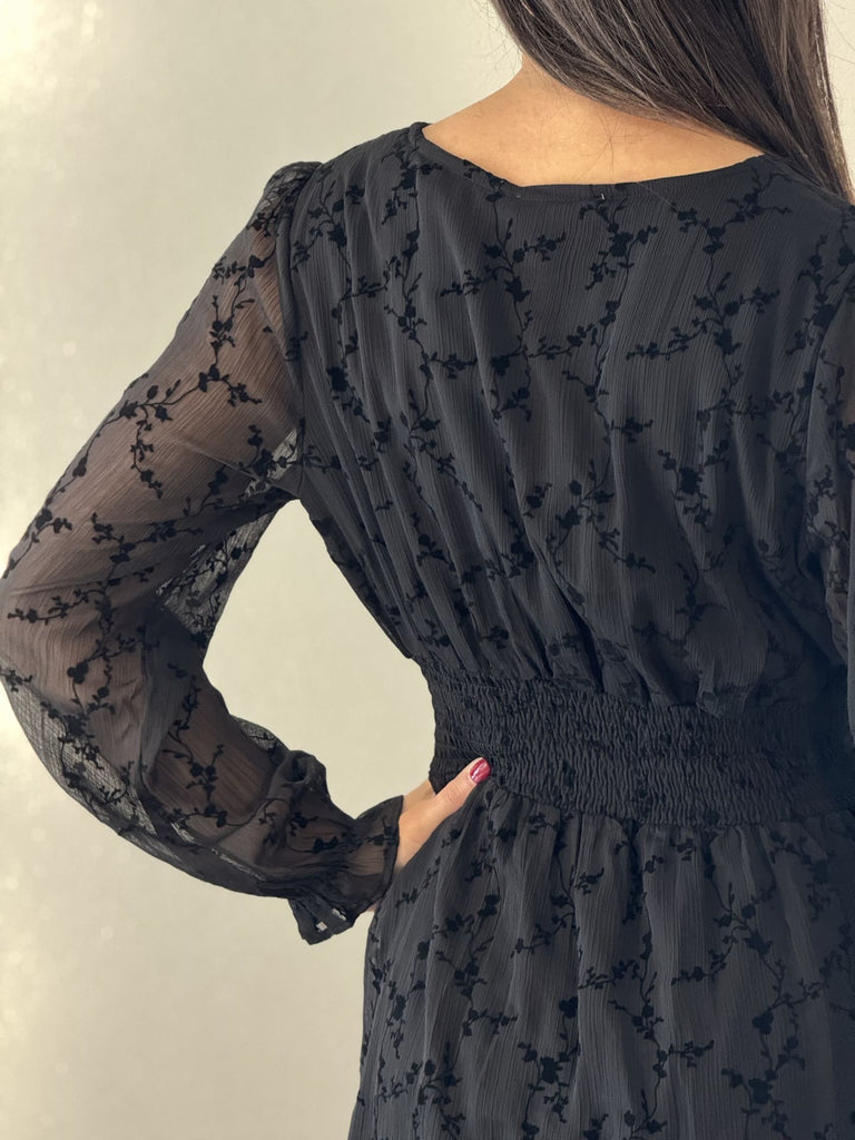 • ROBE COURTE à ml à - imprimé feuris en relief