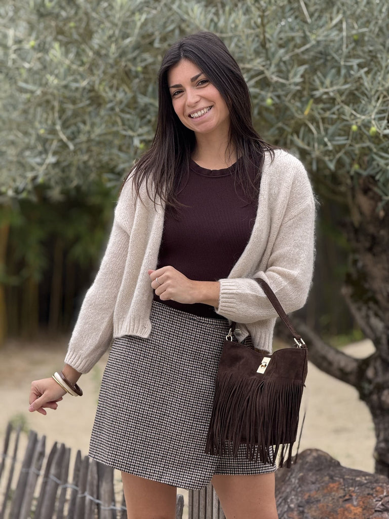 Justine mesure 1m69. Elle porte la taille S/M pour ce modèle.