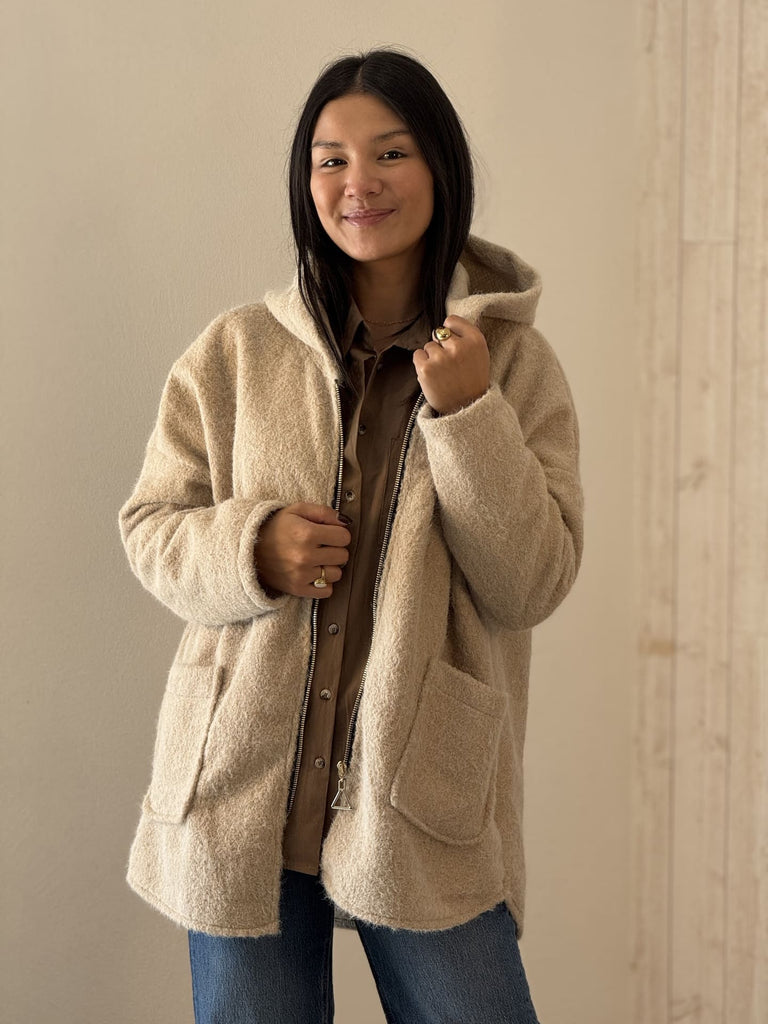 • Veste/manteau à ml avec capuche à fermeture avec 2 poches devant